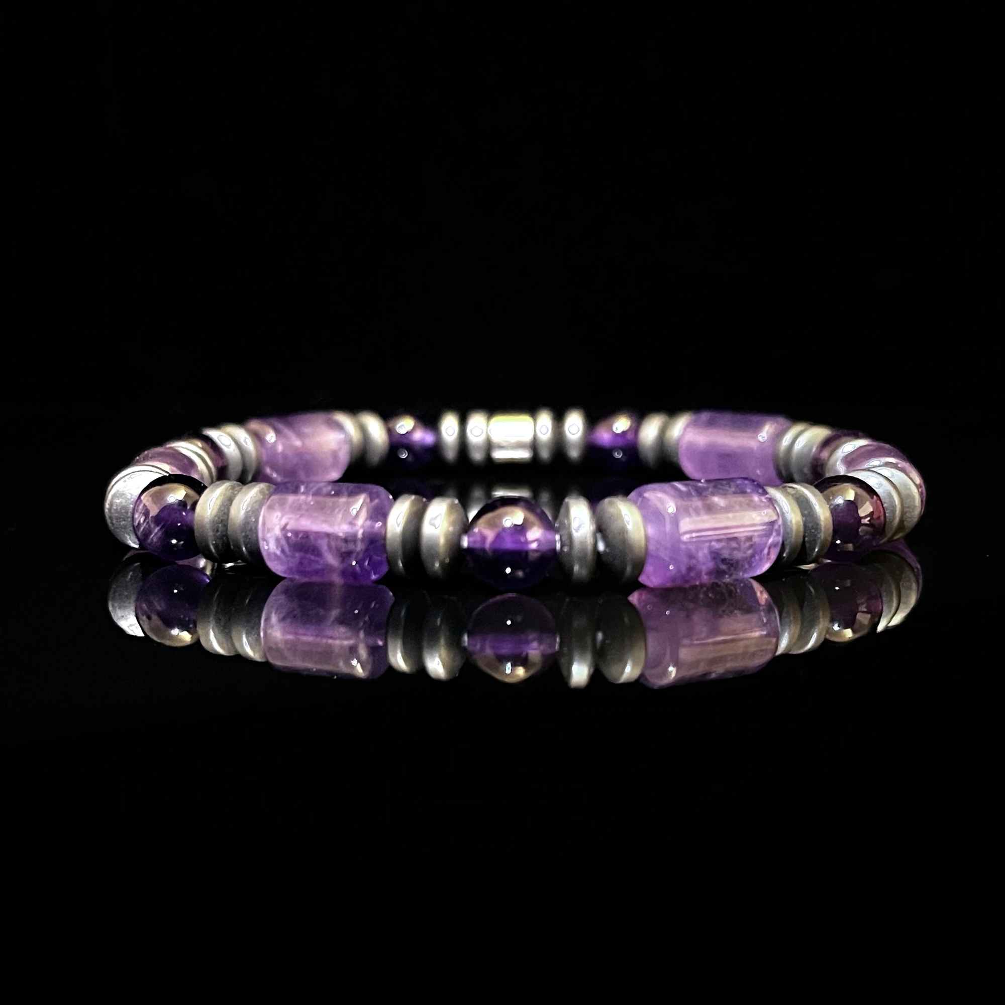 Whether you’re dressing up for a special occasion or elevating your everyday look, this amethyst mixed bracelet adds a touch of elegance and peaceful energy to any outfit.