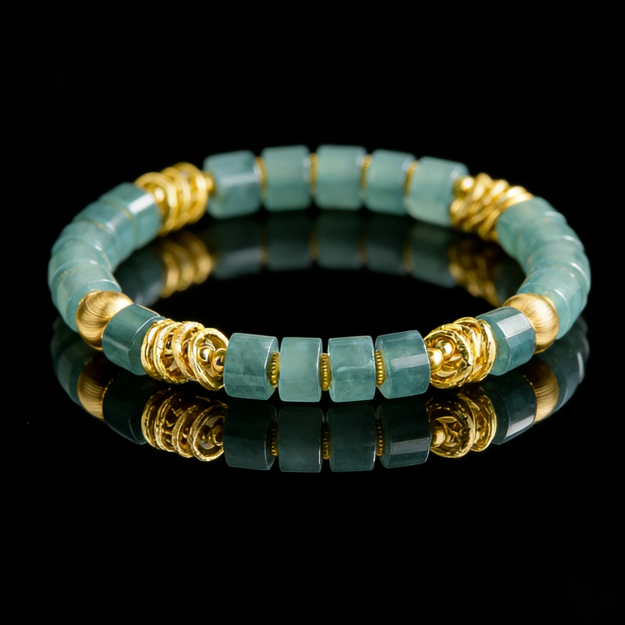 Our S925 silver inlaid Burmese jade straight cut bead bracelet combines the luster of genuine S925 sterling silver with the natural beauty of Burmese jade. Each straight cut jade bead is carefully inlaid into a delicate silver setting, offering a sleek, refined look.